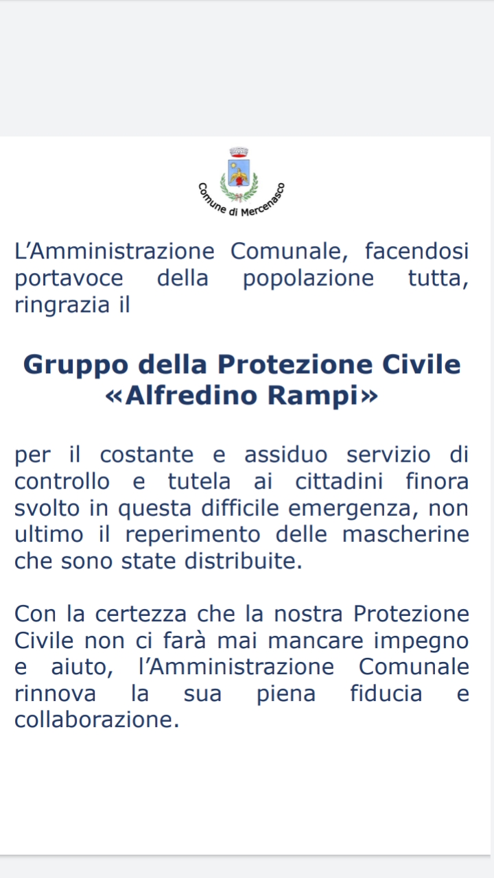 Ringraziamento al Gruppo di Protezione Civile "Alfredino Rampi"